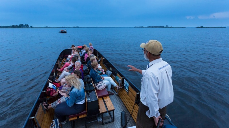 In de avond neemt de bedrijvigheid op en rond het water van De Wieden af en maakt langzaam plaats voor rust en stilte. Vanuit de boot kun je alle vogel-, water- en andere natuurgeluiden goed horen. Bij mooi weer draagt de ondergaande zon bij aan de bijzondere sfeer op het water.