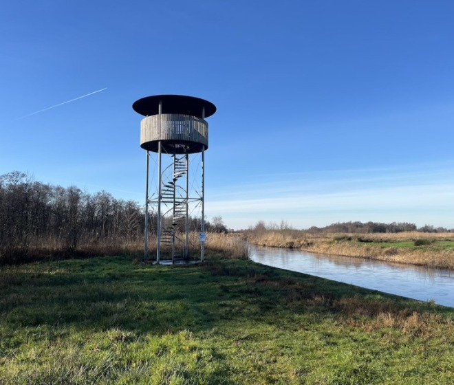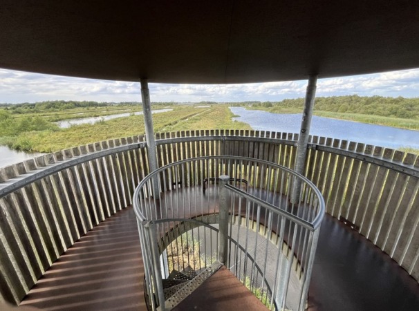 Vanaf de toren biedt vogelkijkhut zicht op ’t Eiland van Westerhof. Dit is een voormalige veenweidepolder, welke nu omgezet is in beweide graslanden met nog de kenmerkende trekgaten. Het landschap is een afwisseling van land en open water, dat door de verschillende dieptes en ook door de verlanding voor veel vogels aantrekkelijk is.